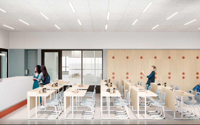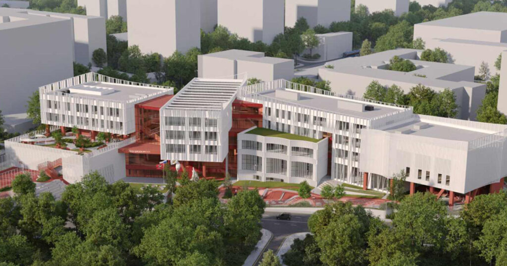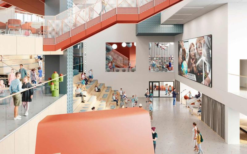 Особое внимание уделят комфорту: школа изначально проектируется без барьеров — с входами на уровне земли, лифтами и подъемниками, чтобы пространство было доступным для всех. За пределами здания построят игровые и спортивные площадки, а также амфитеатр.