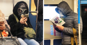 Осевшим с работой дома маски не нужны, но не каждый может работать удаленно, поэтому кто-то, несмотря ни на что, продолжает каждый день ездить в метро, хоть это и страшно, особенно после прочтения всех предостережений от Минздрава. Как быть, если ехать в общественном транспорте надо, а маски нет, демонстрируют московские пассажиры, фото которых опубликовал телеграм-канал «Метро Москвы». Надо заметить, что это не один человек, их много.