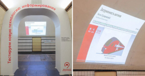 Прямо сейчас сервис уже доступен на «Проспекте Мира». На станции установили проектор, который выдает картинку с актуальными данными о пассажиропотоке на стену.