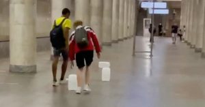 Любопытный спорт затеяли молодые люди на станции метро «Бибирево»: на видео, опубликованном в телеграм-канале «Москва новостная», они пробрасывали по платформе белые пластиковые канистры, очевидно, на дальность, а может быть, они просто устали тащить тяжелые емкости. Сам канал сравнил происходившее с игрой в боулинг, комментаторы считают, что происходящее больше похоже на керлинг.