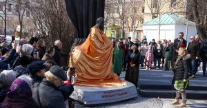 Сегодня прошла официальная церемония открытия — памяник наконец показали общественности. Мероприятие приурочили к Всемирному дню театра.
