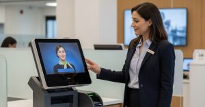 Цифровой помощник получил имя Елена. С клиентами она взаимодействует через экран терминала и может распознавать речь, отвечать на вопросы и вести диалог.