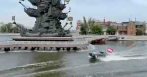 Необычное судно (а его можно так называть) промчалось прямо на фоне памятника Петру I. На видео, опубликованном в телеграм-канале «Новости Москвы», Ford Mustang серого цвета идет по воде словно катер — нос в виде капота и передних колес приподнят над уровнем воды, в то время как задняя часть машины погружена примерно по багажник. Да и звук «машина» издает тоже как у катера.