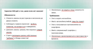 Работнику обещают гарантию 500 рублей в час даже в то время, когда заказов нет. Задача сформулирована четко: забирать заказы из ресторанов и магазинов и отвозить их до двери клиента.