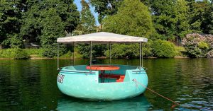 В Москве набирают популярность «бухлоходы» — круглые лодки с навесом, мотором и грилем