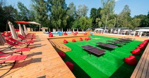 Понтонные бассейны парка «Фили» расположены прямо на набережной Москвы-реки. Вода туда поступает из водоема, фильтруется и нагревается до 24 градусов. Тоже есть возможность поиграть в волейбол и заняться другими пляжными развлечениями.