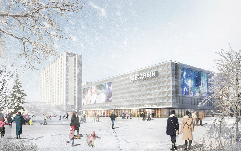 «Звездный» входил в сеть «Каро». В своей новой жизни он станет комплексом с кинотеатром на 678 мест, продмагами и другими магазинами, оборудованный пятью лифтами, то есть фактически небольшой торговый центр.
