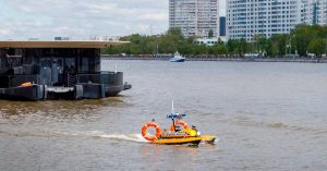 «Специалисты Центра перспективных разработок протестируют на воде первый безэкипажный катер. Он станет универсальным помощником для транспортной полиции ЦФО и сможет автоматически фиксировать нарушения в акватории Москвы-реки», — пишет канал дептранса.