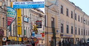 Возможно, регламент стоило бы сделать еще более строгим, особенно в случае с памятниками истории, культуры и архитектуры. Например, ввести ограничение на цвет вывесок, использовать только нейтральные цвета, скажем, белый, черный, серый или цвет натуральных металлов. Иногда вывески даже неплохие, но цвет настолько выбивается, что они просто портят внешний вид памятника архитектуры.