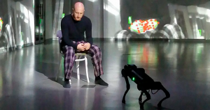 На выставке «Формы диалога» в ММОМА состоялись показы спектакля «В ученом обществе» по мотивам рассказа Чехова «Каштанка». Русскую классику доверили играть механическим четвероногим — на сцене было четыре робота и один человек.