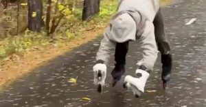 В соцсетях разлетелось видео, где парень в костюме квадробера катается на роликах, правда, не на двух ногах, а, как подобает настоящему животному, на четырех лапах.