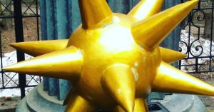 До сих пор эта работа, предположительно, называлась просто «Золотая звезда» и нигде не выставлялась. «Название “Монумент будущим звездам” мы придумали уже в ГИТИСе — как напутствие ребятам, которые выходят из стен института и которыми мы гордимся», — сказал Заславский.