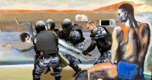 Искусство реагирует на актуальные события чуть медленнее газет и новостных лент, но зато наводит фокус гораздо четче. Политический карикатурист, работающий под псевдонимом Zimorodok_mult, создал серию, посвященную актуальным городским персонажам — полицейским в шлемах, которые задерживают всех подряд. В его серии они задерживают девочку на шаре (а мужчина снимает этот процесс на телефон), девочку с персиками, прилетели и задержали на Луне астронавта Нила Армстронга, ведут в автозак «Голубых танцовщиц» Дега и Ивана Грозного, убившего своего сына. «Кружевница» Тропинина, видимо, плела заговоры — ее тоже решили оторвать от работы и арестовать.