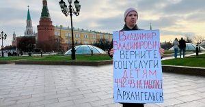 В центре Москвы сегодня была задержана пикетчица и мать ребенка с инвалидностью Елена Черепанова. Она развернула на Манежной площади плакат с обращением «Владимир Владимирович, верните соцуслуги детям», пытаясь привлечь внимание к сокращению государственного финансирования социально-реабилитационных центров.