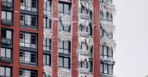 Сегодня в соцсетях появились видео и фото многоэтажки, балконы и окна которой покрыты слоем льда и крупными сосульками. Сначала изображения заледенелого фасада опубликовали в чатах жителей ЖК, который находится в Нижегородском районе, а затем они разошлись по сети.