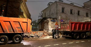 «Они кругом врут. Это пристройка к находящемуся в аварийном состоянии Дому служителей архива [Коллегии иностранных дел], статусному памятнику, который в этом году пошел огромными трещинами после начала работ по забивке свай бизнес-центра, — пишет юрист Дмитрий Чарахчьян, один из лидеров движения защитников Ивановской горки. — Пристройку к аварийному памятнику ломают экскаватором. Это не может не повредить объект еще больше. И все на территории памятника, где запрещены любые работы, кроме работ по сохранению объектов культурного наследия».