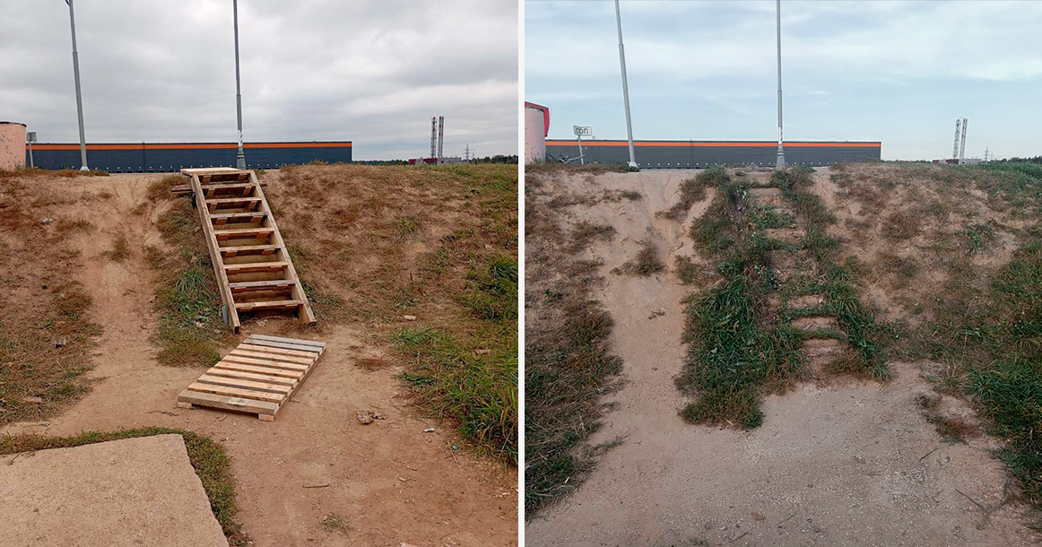 Люди решили проблему своими силами: они организовались и собрали средства, на которые построили деревянную лестницу. Как сообщает телеграм-канал «Осторожно, Москва», идею подали рабочие, возводившие комплекс четыре года назад и протоптавшие путь к остановке. В итоге лестницу снесли, поскольку в проекте ЖК ее не было обозначено.