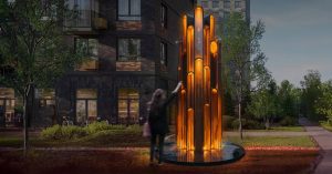 В ЖК «Тропарево Парк» появится скульптура в форме дерева со светодиодной подсветкой, а объект в ЖК «Алхимово» напоминает столбы оранжевого света.