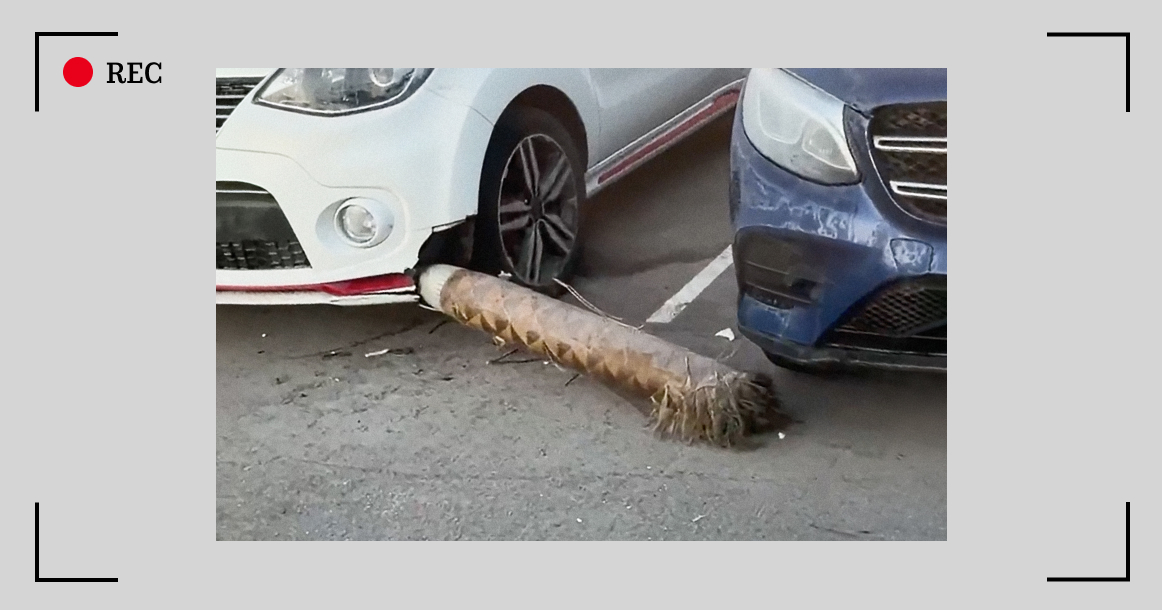 Видео опубликовал канал «МК: срочные новости». Цилиндрический, предположительно, обломок лежит на асфальте между двумя припаркованными автомобилями. Одна из машин повреждена, взрыва не было.