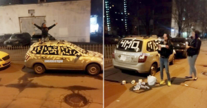 В Отрадном девушка обклеила машину своего парня прокладками за то, что он ей изменил
