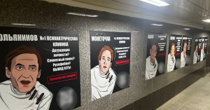 В переходе на Арбате расклеили плакаты с рекламой психиатрической клиники «от иноагентов»