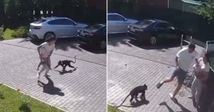 Разъяренное животное стащило малышку с лестницы-стремянки, куда она забралась, и повалило на землю. Сначала за девочку безуспешно пыталась вступиться женщина, затем к ней присоединился мужчина. Он попытался отогнать обезьяну пинками, впрочем, тоже не слишком удачно.
