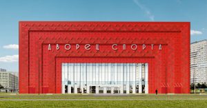 В Москве в последнее время все больше любят делать отсылки к СССР. Вот, например, депстрой показал, как будет выглядеть новый спорткомплекс на месте бывшего Тушинского аэродрома. И этот внешний вид очень напоминает здания в стиле брутализма, которые массово возводились в советской Москве в шестидесятых и семидесятых годах, а также советские кинотеатры той эпохи. Дополнительно усиливает впечатление тонкий шрифт, которым выполнена надпись «Дворец спорта», красный цвет главного фасада и развевающиеся с фланга красные знамена (правда, вперемешку с белыми). Вносят нотки современности разве что фактурное остекление и красные рамы переднего фасада да диагональные линии на боковых стенах.