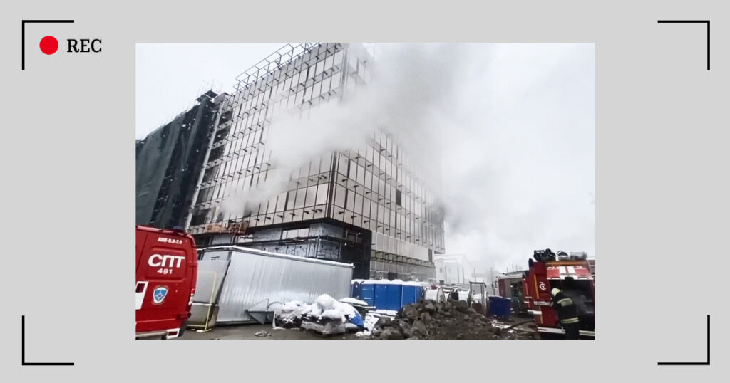 Горит строящийся жилой комплекс по адресу 2-й Амбулаторный проезд, 14. В огне и дыму 2-й и 3-й этажи здания.