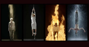 Иллюстрация: Билл Виола. Четыре работы из серии «Мученики»: Мученик земли, Мученик воздуха, Мученик огня, Мученик воды (все — 2014). Цветное HD-видео на плоских панельных экранах. 7’10”.
