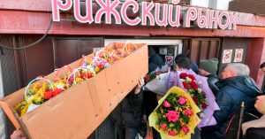 В районе Рижского рынка большие пробки, а на самом рынке цветочный ажиотаж