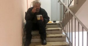 Соседка бедолаги рассказала, что мужчина болен, но при этом уже пятые сутки спит на холодной лестничной клетке. Об остальных удобствах речь тем более не идет, хотя, судя по фото, его хотя бы подкармливают (но кто — неравнодушные соседи или горе-родственнички — неясно).