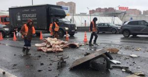 В ДТП с участием трех машин попал фургон, перевозивший говядину.