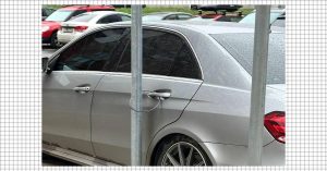 Дело было в ЖК «Саларьево Парк». На снимке видно, что машина припаркована прямо на тротуаре, выложенном плиткой. И чтобы имущество не увезли, хозяин предусмотрительно пристегнул его тросом к уличному столбу. Осталось только номер повесить на руле и поставить корзинку с цветами и извинениями.
