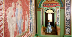 Реставраторы вернули залам первозданные яркие цвета — брусничный, ультрамариновый, помпейский красный чередуются в пространстве интерьера, выполненного в греческом стиле.