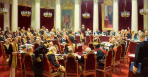 Иллюстрация наверху: фрагмент картины Ильи Репина «Торжественное заседание Государственного совета 7 мая 1901 года, в день столетнего юбилея со дня его учреждения», 1903