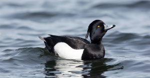 Хохлатая чернеть — это небольшая симпатичная утка с черным хохолком. Они живут, как и все нырковые утки, в глубоких водоемах и увидеть их обычно очень тяжело.