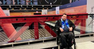 Интересно, что на коляске Ивана установлен литийионный аккумулятор. На сайте авиакомпании «Победа» в правилах перевозки прописано, что кресла-коляски, работающие на таких аккумуляторах, которые используют клиенты с ограниченными возможностями, составляют исключение и могут перевозиться.