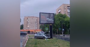 В подмосковном Щелково на одном из рекламных щитов размещено изображение с надписью «Некуда спешить. Просто сбавь скорость» на фоне фотографии серебристого седана, врезавшегося в столб.