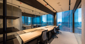 Всего в этом премиальном коворкинге 22 кабинета (друг на друга не похожих), расположенных на площади 650 кв. м в башне «Федерация». Также есть опен-спейс на 6 рабочих мест (это для проектных команд и командированных сотрудников). Каждый кабинет закрывается на цифровой ключ, при этом можно арендовать мини-сейф и локер. Перегородки из двойного стекла покрыты матирующей пленкой.