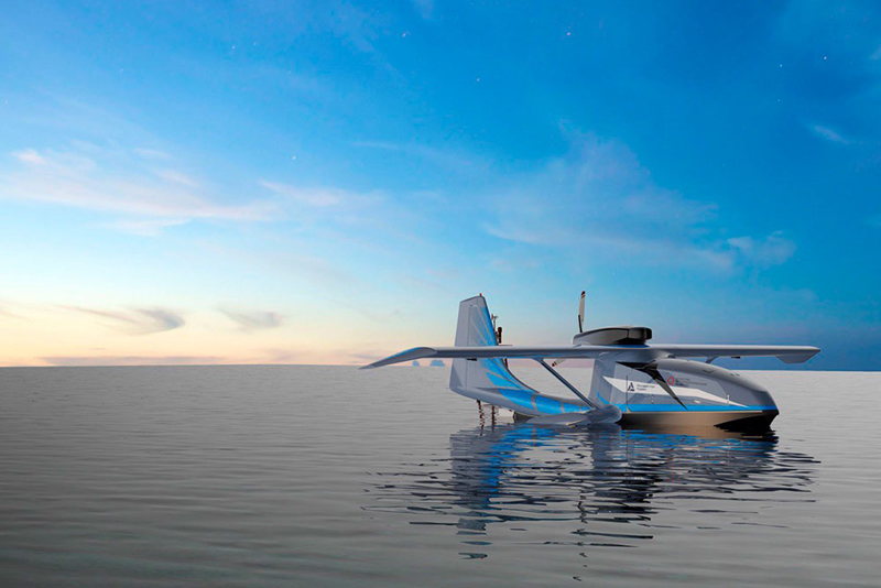 Амфибия — это беспилотник, которому не нужна взлетно-посадочная полоса: он может садиться как на воду, так и на сушу. У него обтекаемый корпус, снизу он напоминает лодку или катер. Крылья и хвост — как у обычного самолета.