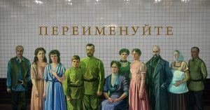 Картинку с царской семьей, которая жалобно, обнявшись, просит переименовать станцию, названную в честь Петра Войкова, одного из предполагаемых участников принятия решения о расстреле семьи последнего российского императора, опубликовали в твиттере «Архитектурные излишества».