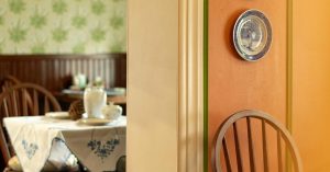 Само здание, в котором расположилось кафе, небольшое. В нем всего два этажа, внутри столики на 30 мест. Зато есть просторная летняя веранда — там еще 60 мест. В интерьере сохранена концепция жилого дома: комнаты, кухня, чердак, текстиль и винтажный фарфор.