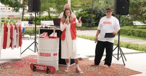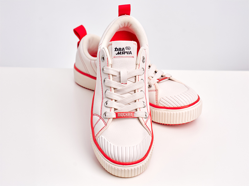 А 21 августа в павильоне «Зеленый маркет» на Болотной площади презентовали первую коллаборацию «Москвы» — с брендом «Два мяча». Гости оценили модель Bubble 71 — пару с облегченной конструкцией, верхом из белой искусственной текстурной кожи, красными декоративными элементами и металлической протяжкой для шнурков с логотипом «Москва», а также высокие кеды из хлопка «1965».