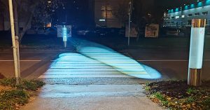 В последние годы пришли к более простому, но при этом действенному решению — у переходов сейчас часто устанавливают фонари с контрастной подсветкой, работающей непрерывно, а не только когда на зебру вышел пешеход. Благодаря этому водитель заранее видит, что перед ним переход, а люди на нем становятся заметнее. И все же эти фонари захватывали лишь небольшую зону подхода к зебре, из-за чего пешеход хоть и был виден заранее, но только перед непосредственным выходом на дорогу.