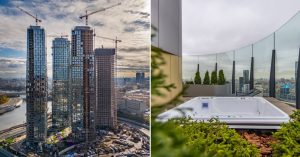 В строящихся небоскребах напротив «Сити» начали устанавливать стеклянные беседки и джакузи на крыше
