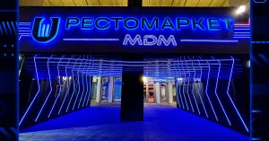Как заявляют сами создатели, «Рестомаркет» на «Фрунзенской» будет фудкортом в стиле киберпанк. Вход в него оформлен как «неоновый межгалактический портал», внутри тоже все неоновое, сверкающее и переливающееся. Это такая стилизация, видимо, под киберпанк образца 1980-х. Телеграм-канал «Вечерний Лошманов» пишет, что здесь будут даже роботы-официанты.