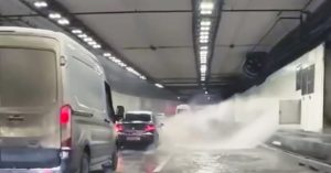 Телеграм-канал «МК: срочные новости» уточняет, что в тоннеле прорвало пожарный гидрант. По другой информации, там по ошибке сработала система пожаротушения. Результат один — небольшой затор на дороге.