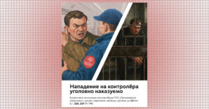 Плакат, который показал дептранс, решен в стилистике «все ясно без слов» (но слова все равно добавили — на всякий случай). Слева пассажир с перекошенным лицом уже почти перешел из стадии возмущения в стадию «сейчас будет статья». У контролера в синей форме на рукаве красный шеврон «Организатор перевозок». Справа логичное продолжение сюжета: тот же мужчина, но уже в приглушенных тонах, за решеткой с выражением лица «лучше бы оплатил проезд». Что произошло между, остается загадкой, а спор завершен монтажной склейкой с тюрьмой. В тексте при этом поясняется, что нападение на контролеров квалифицируется по статье 318 УК РФ, по которой максимальное наказание до 10 лет лишения свободы.