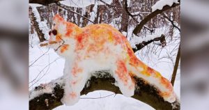 Кстати, на фоне моды лепить на стволах деревьев «врезавшихся» в них животных (чаще всего почему-то достается зайцам) этот кот на ветке, возможно, откроет новое направление в жанре снежной анималистики.