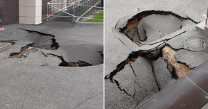 Периодически такие «порталы» открываются на дорогах Москвы, и их оперативно стараются устранять. В данном случае префектура ЗАО не спешит и просит указать адрес происшествия. Впрочем, видно, что место все же огородили лентой — и на том спасибо.